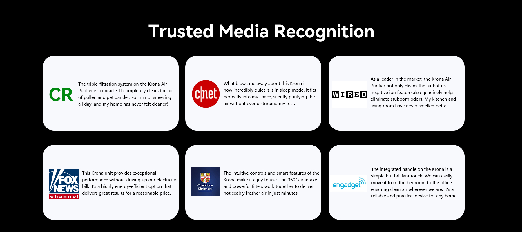 The birth of Krona began with founder Eleanor Vance’s deep love for her son, who suffered from asthma. Frustrated by complicated purifiers, she was driven to create a powerful yet simple device that every family could use with ease. She focused on core technology to filter pollutants while simplifying every step, aiming for effortless purification.
